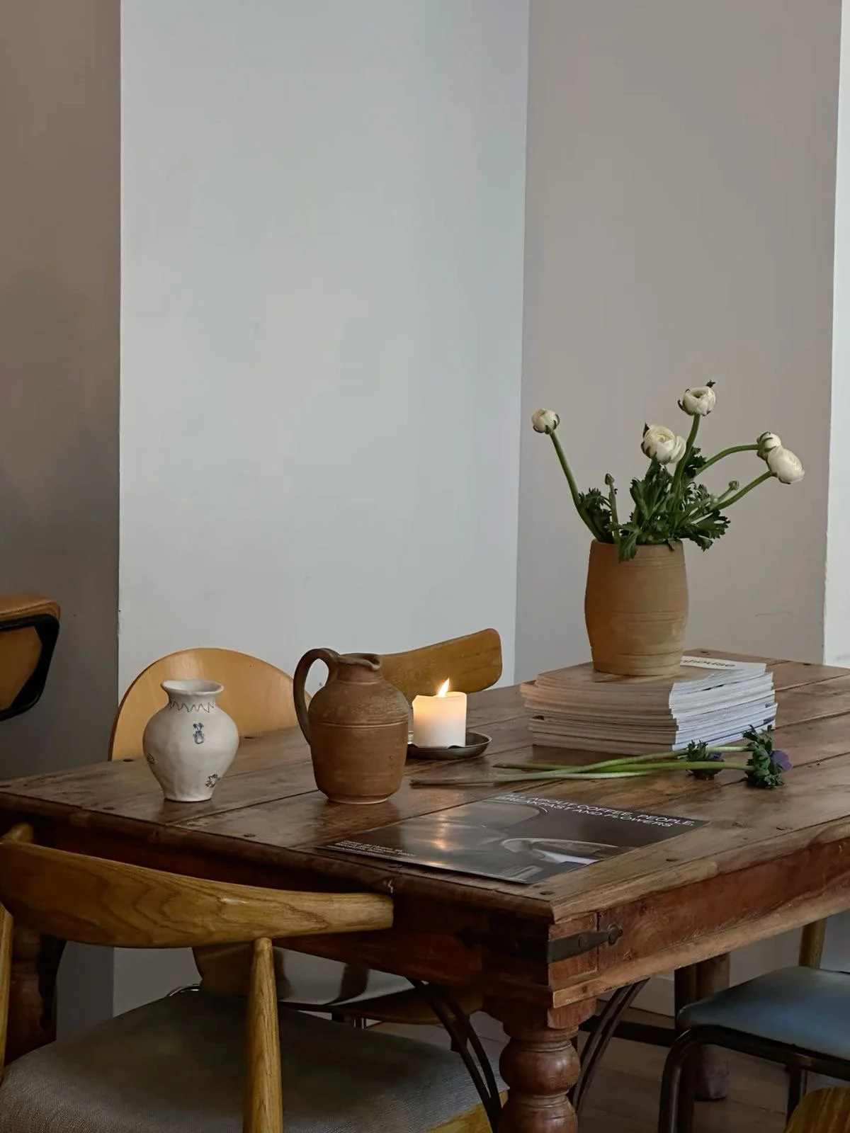 • Nature: A single stem, herbs in water, or foraged branches that feel alive rather than styled.